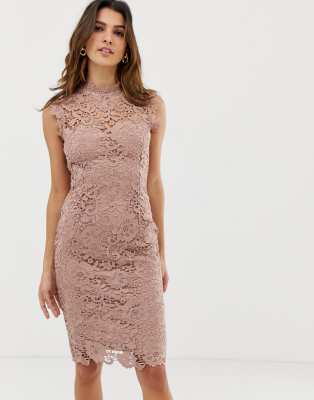 Taupe Fitted Lace Dress – Simply