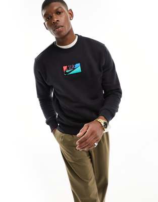 Nike – Club – Sweatshirt in Schwarz mit Logo-Aufnäher