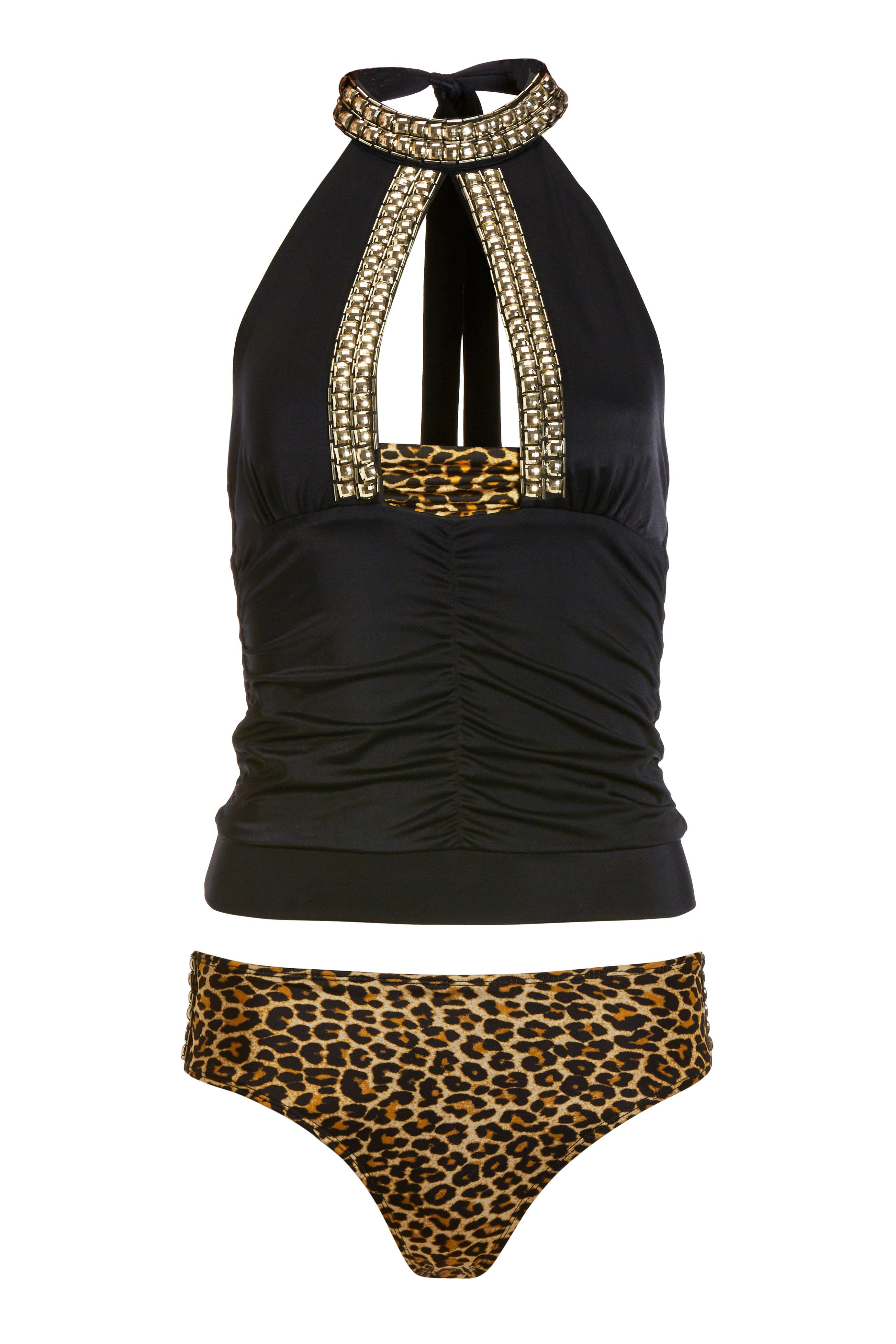 Jeweled Animal-print Two-piece Tankini